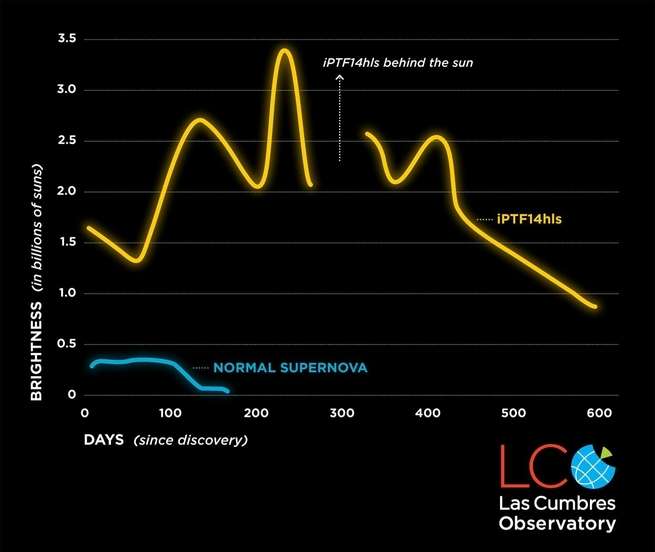 من المحتمل أن iPTF14hls لا ينطبق تماماً على النموذج النظري نظراً لوجود أخطاء في النموذج نفسه، ولكن من المحتمل أيضاً أن العلماء اكتشفوا شيئاً جديداً تماماً. وبما أن الجسم يبدو كمستعر أعظم عادي (بغض النظر عن تغيراته مع الزمن) فقد لا يكون ظاهرة غريبة للغاية. وفي الواقع، نحن لا نعرف بالضبط كيفية عمل المستعر الأعظم حتى نحكم على حدث ما بأنه نادر الوقوع. ولزيادة معلوماتنا عن المستعرات العظمى، ومعرفة ما إذا كان iPTF14hls ظل باقياً وتابع انفجاراته حتى بعد آخر سطوع شديد له، يجب على العلماء ببساطة أن يتابعوا التحديق بالنجوم.