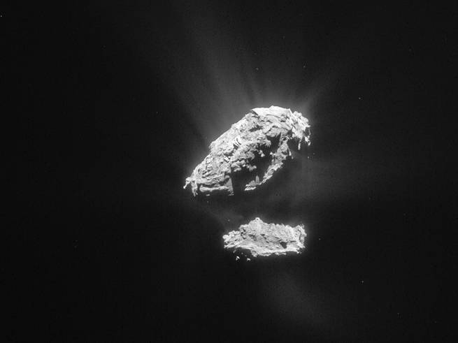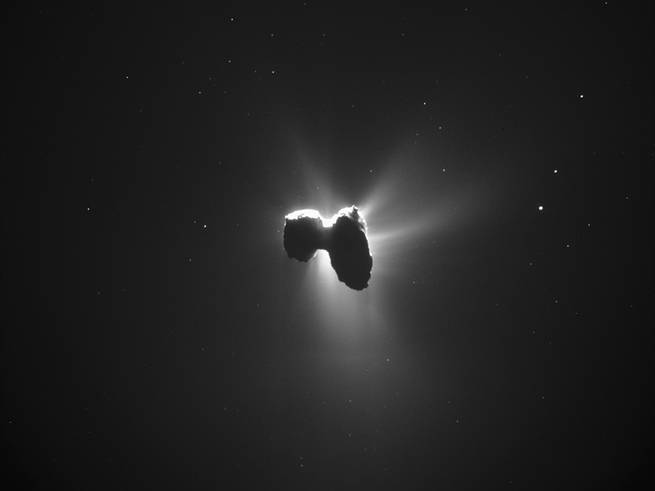 قامت وكالة الفضاء الأوروبية برفع صور للكون وردت من بعثة روزيتا إلى المذنب 67P في مطلع شهر يوليو إلى بعض مواقع الإنترنت، وجاءت النتائج مذهلة للغاية. فقد كانت روزيتا أول مركبة فضائية تدور حول مذنب، وعلى مدار الأعوام الإثني العشر التي استغرقتها مهمتها، التقطت هذه المركبة حوالي 100,000 صورة من الفضاء باستخدام كلا الكاميراتين ضيقة الزاوية وعريضة الزاوية.