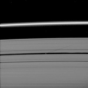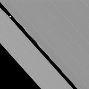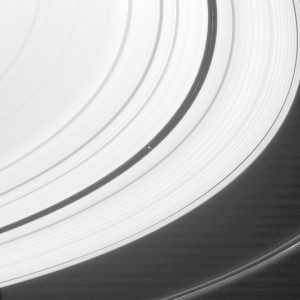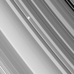 يمكن للأقمار الصغيرة أن تحدث آثاراً كبيرة. نرى هنا القمر بان، بعرض 42 كيلومتر تقريباً، وهو يفتح ثغرة بعرض 322 كيلومتر عبر حلقات زحل. ويشترك في هذا الطريق مع حلقتين صغيرتين خافتتين.