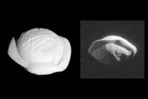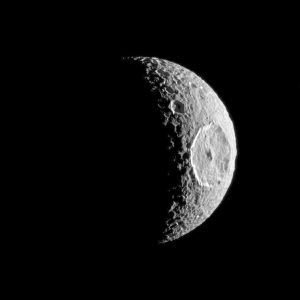 هذا ليس بقمر! في الواقع إنه كذلك: ميماس، قمر زحل. غير أنه يبدو كمركبة نجم الموت في أفلام حرب النجوم، وذلك بفضل حفرة هيرشل، والتي يبلغ عرضها حوالي 130 كيلومتر.