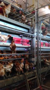 تبدو حياة الدجاج في الأقفاص التجارية الكبيرة مليئة بالفوضى. وتعيش في هذه الحظائر آلاف من الدجاج خارج الأقفاص. حيث تأخذ غذاءها من أحد مستويات القفص، وتنام في مستوى آخر، وتضع البيض في مناطق التعشيش في مستوى ثالث.