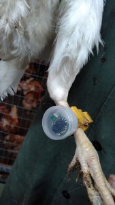ويستطيع المزارعون تتبع الأبقار الحلوب بسهولة، لأنها حيوانات كبيرة، ويمكن أن تحمل كل منها أداة تحديد موقع تغذى بالبطارية، وأجهزة قياس التسارع، وهي تنبه الأطباء البيطريين في حال تعرض أي من أفراد القطيع للأذى. ولكن الدجاج أصغر حجماً، ولذلك توجّب على الفريق تطوير أداة تعقب خاصة به.
