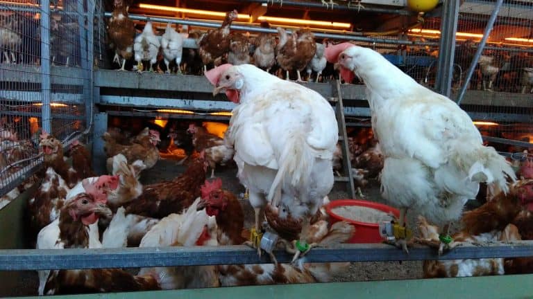 تبدو حياة الدجاج في الأقفاص التجارية الكبيرة مليئة بالفوضى. وتعيش في هذه الحظائر آلاف من الدجاج خارج الأقفاص. حيث تأخذ غذاءها من أحد مستويات القفص، وتنام في مستوى آخر، وتضع البيض في مناطق التعشيش في مستوى ثالث.