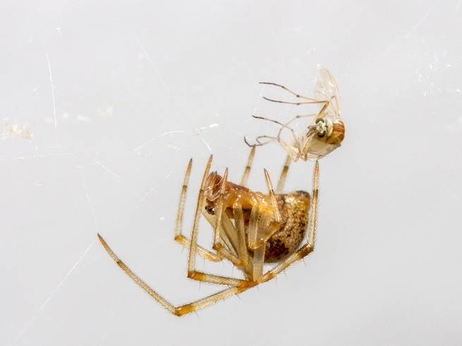 وقد أجريت مع زملائي مسحاً بصرياً لخمسين منزلاً في ولاية كارولينا الشمالية لجرد أي مفصليات أرجل تعيش تحت أسقف المنازل. كان كل منزل قمنا بزيارته موطناً للعناكب. وكانت أكثر الأنواع التي واجهناها هي عناكب الشبكة المستديرة وعناكب الأقبية.
