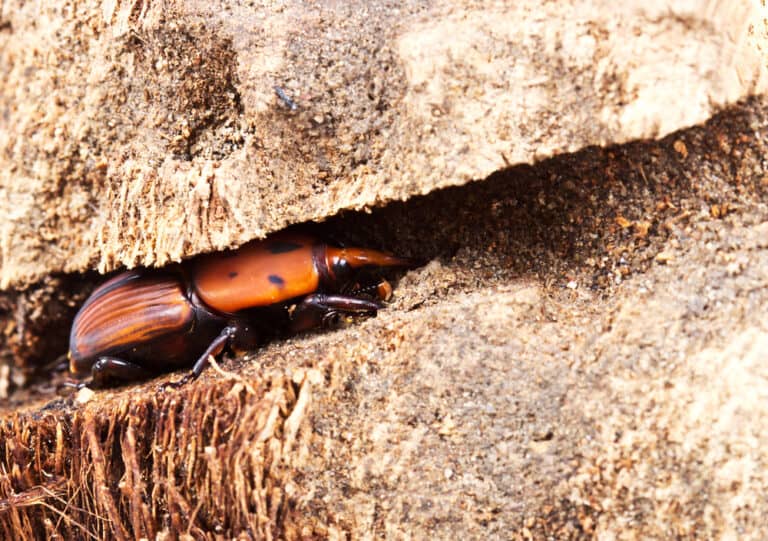 تقضي الحشرة جميع أطوار نموها داخل جذع الشجرة، وذلك بصنع أنفاق لنفسها داخل النسيج الخشبي والوعائي؛ حيث تحفر إناثها في أشجار النخيل لوضع بيضها، ويمكن أن يؤدي تواجدها الطويل داخل الشجرة وعدم الكشف المبكر عن الإصابة إلى موت النخلة كأهم ضرر يُمكن أن تسببه هذه الآفة.