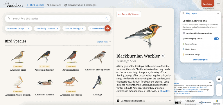 لهذا السبب، قامت ديب وجمعية أودوبون الوطنية والعديد من الباحثين الآخرين، بالإضافة إلى المؤسسات ومورديّ التكنولوجيا، بتصميم خريطة تفاعلية تحمل اسم "مستكشف هجرة الطيور"، والتي تساعد عشاق الطيور غير المختصين في الاطلاع على الرحلات التي تقوم بها الطيور وفهم تأثير هذه الحيوانات على الأنظمة البيئية. تم تشغيل هذه الخريطة على الإنترنت في سبتمبر/أيلول 2022، وهي متوفر باللغتين الإنجليزية والإسبانية. يمكنك زيارة موقع الخريطة بالنقر على هذا الرابط.