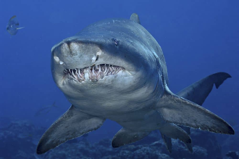 تجعل كل هذه الأسنان قرش الرمل الببري يبدو خبيثاً، ولكنه في الحقيقة من أكثر أنواع القرش التي صادفتُها تهذيباً. وقد التقيتُ به قرب جزر أوجاساوارا على الساحل الياباني المعروفة بكثرة قرش الرمل الببري فيها.