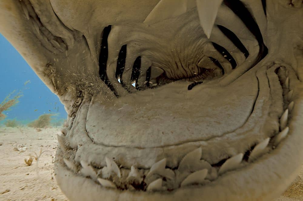كان فم القرش الببري أمراً مؤثراً بالنسبة لي عندما رأيته مباشرة وبدأ يكتشف الكاميرا التي أحملها بفمه. وقد عُرف هذه القرش بأنه قادر على نهش لوحات السيارات وعلب الدهان وغيرها من الأنقاض، وذلك بفضل فكه العريض وأسنانه المسننة. فهذا القرش ليس مجرد حيوان مفترس يصعب إرضاؤه.