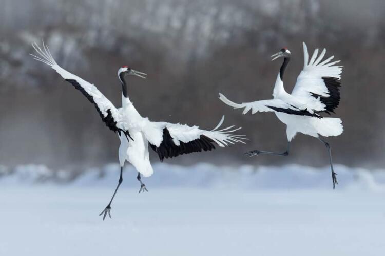 6- رقصة الحب لطيور الكركي ذات التاج الأحمر
