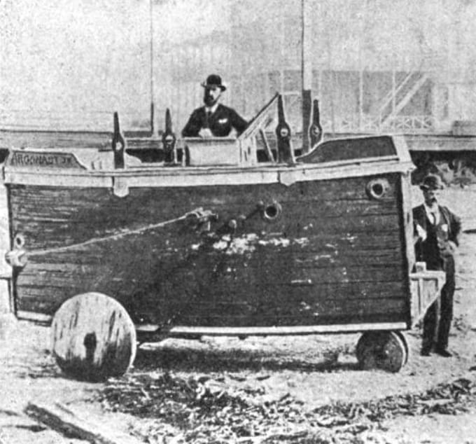 وفي عام 1897، بنى سيمون ليك غواصة «Argonaut1»، وهي مركبة بطول 36 قدماً تعمل بمحرك بنزين بقوة 30 حصان، كان ما يميزها مجموعة من العجلات التي سمحت لها بالتوازن عند الإبحار على السطح. كما امتلكت منظاراً للرؤية، وغرفةً للغواص، وخرطوماً عائماً لتوفير الهواء للمحرك والطاقم.