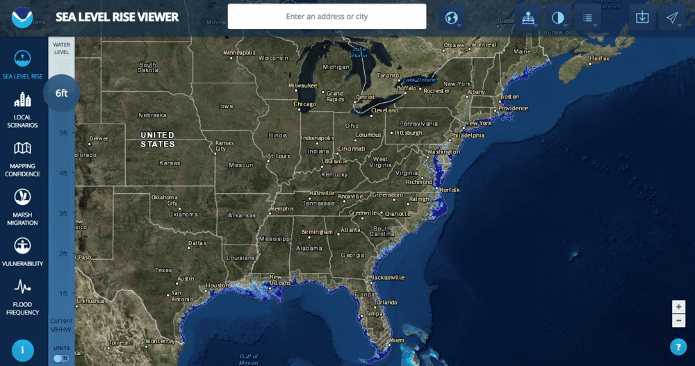 وفي دراسة تعود إلى عام 2015 نشرت في مجلة العلوم، قارن باحثون من جامعة فلوريدا بقيادة أندريا دوتون مستوى الاحترار الحالي بفترات سابقة عندما كانت الأرض دافئة فقط. وكانت النتائج غير مريحة. ففي كل فترة من تلك الفترات كان ارتفاع مستوى سطح البحر يبلغ ستة أمتار على الأقل. وتمتلك الوكالة الوطنية للمحيط والغلاف الجوي راسم خرائط يمكننا من رؤية ما الذي سيحدث للولايات المتحدة الأميركية ضمن حالات متعددة من ارتفاع مستوى سطح البحر الذي وصل إلى حد أقصى 1.8 متر.