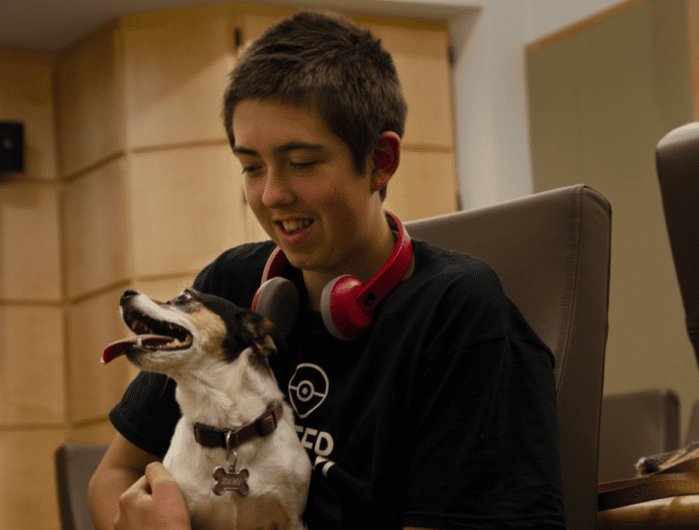 جنّد الباحثون 30 شاباً تتراوح أعمارهم بين 8 و 17 عاماً -83% منهم يعانون من إعاقة في النمو- للمشاركة في الدراسة مع كلاب العائلة. وأُجريت التجارب في غرفة كبيرة فارغة. إذ تم رسم خطوط مسجلة ملونة على الأرض، وتم إعطاء الأطفال تعليمات حول كيفية السير على الخطوط بطريقة موحدة مع كلبهم غير المقيد.