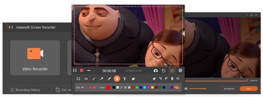 Aiseesoft Screen Recorder برنامج يعمل على كلا أنظمة التشغيل، الويندوز و ماك أو إس، يمكنه التقاط مقاطع فيديو عبر الإنترنت وتسجيل الألعاب والمحاضرات والموسيقى وتسجيل مقاطع فيديو كاميرا الويب وغيرها، يتميز بسهولة الاستخدام فهو يتمتع بوجود الاختصارات وخاصية التسجيل بنقرة واحدة وإعداد مفاتيح الاختصار لبدء إيقاف التسجيل.