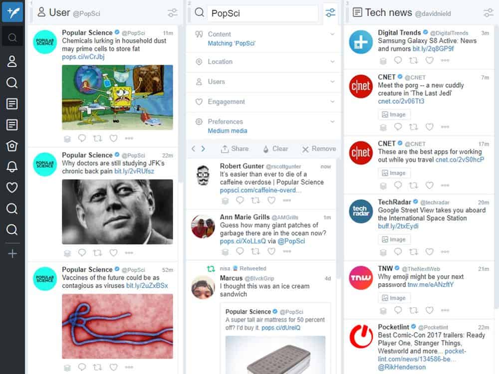 إذا جربت نصيحة أو أكثر من النصائح السابقة، فقد أصبحت على الأرجح مستعداً للمستوى التالي من العمل على تويتر، أي أنه حان الوقت لإطلاق تويت ديك. كان تويت ديك خدمة خارجية مستقلة سابقاً، غير أن هذه الخدمة أصبحت حالياً ملكاً لتويتر وتحت إدارته. وضمن واجهة تويت ديك، يمكنك أن ترى تحديثات فورية لحسابات متعددة في نفس الوقت، ويمكنك أن تجدول التغريدات، وإجراء عمليات بحث متقدمة، وغير ذلك.
