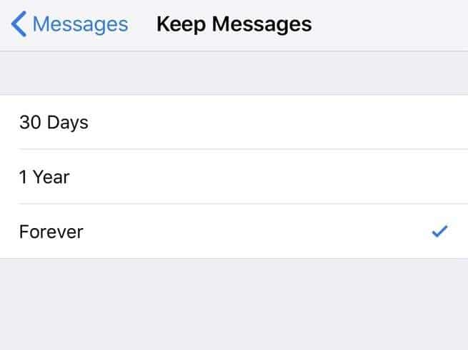 ستجد عدة خيارات منها أن يحتفظ التطبيق بالرسائل دائماً أو لمدة سنة أو لثلاثين يوماً فقط، الخيار لك.