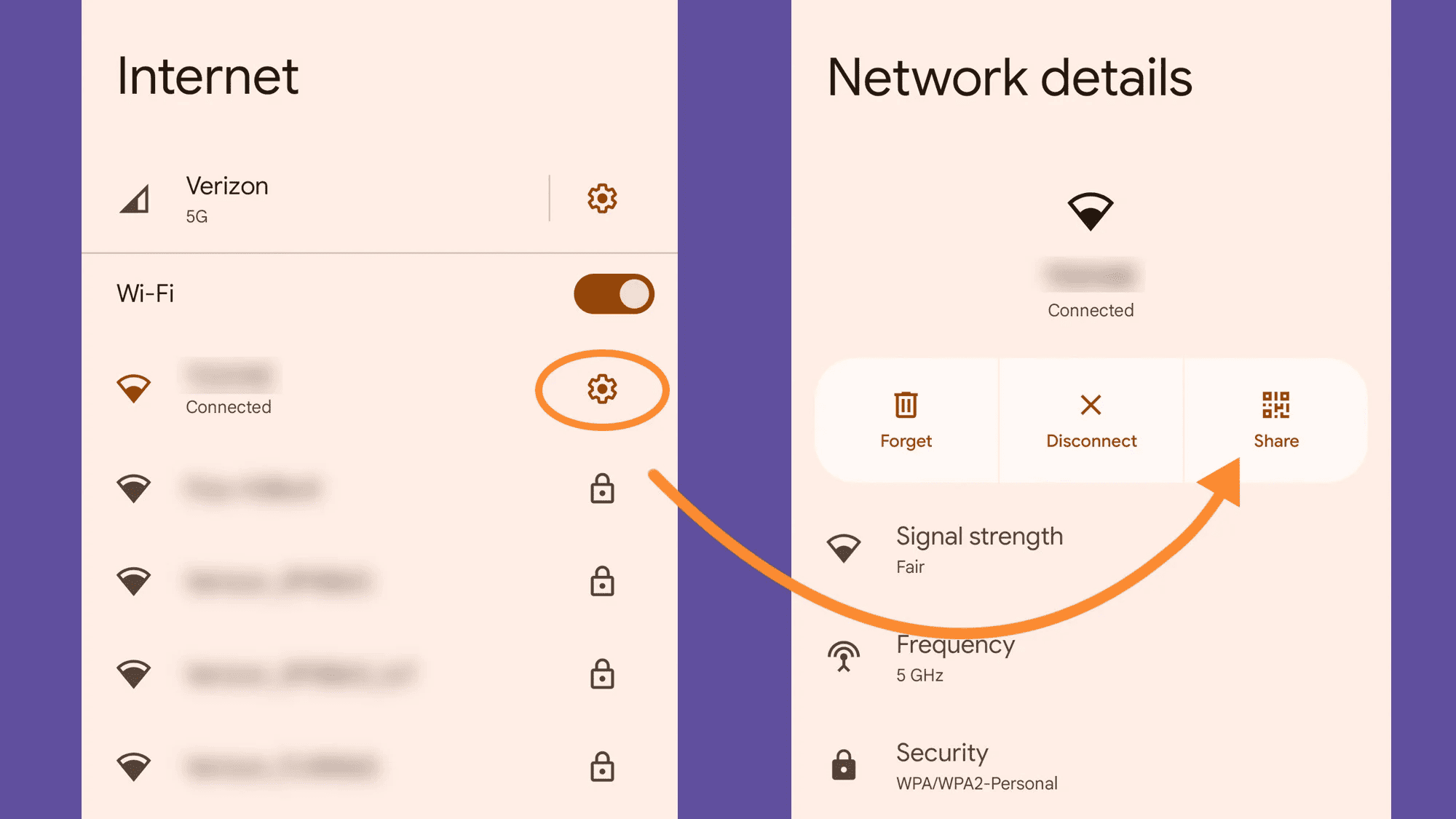 يمكنك العثور على كلمة مرور شبكة واي فاي التي يتصل بها جهازك الذي يعمل بنظام أندرويد بسهولة. كل ما عليك فعله هو إنشاء رمز الاستجابة السريعة (كيو آر) لمشاركة الاتصال.