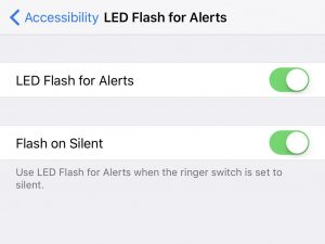 لأولئك الذين يفضلون تنبيهات الهاتف المحمول المرئية على المسموعة، سيعجبكم هذا: يمكنك ضبط فلاش هاتفك الآيفون لكي يضيء عندما يتم عرض إشعار على الشاشة. قد تكون هذه الإمكانية مفيدة أثناء الاجتماعات، عندما يضع العديد من الأشخاص هواتفهم المحمولة على الطاولة مع توجيه جانب الشاشة نحو الأسفل.