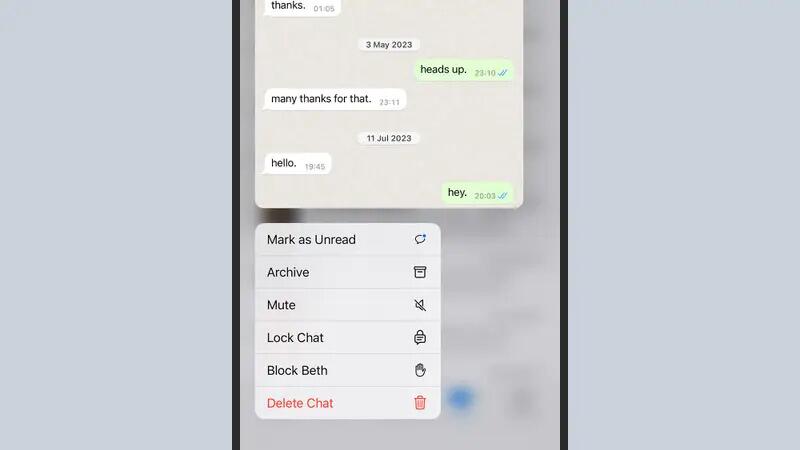 يتيح لك تطبيق واتساب قفل الدردشات أيضاً، وهذا خيار يشبه أرشفة الدردشات، علماً أنه لا يمكن عرض الدردشات المقفلة إلا باستخدام رمز المرور الخاص بجهاز آيفون أو عبر معرّف الوجه (Face ID) أو معرف اللمس (Touch ID). يمكنك قفل محادثة ما بالنقر على الشريط أعلى الدردشة ثم اختيار قفل الدردشة (Lock Chat). يمكنك الوصول إلى هذه الرسائل المخفية من خلال النقر على الدردشات المقفلة (Locked Chats) أعلى قائمة المحادثات. يحتوي تطبيق فيسبوك مسنجر (Facebook Messenger) المخصص لنظام آي أو إس على ميزة الأرشفة أيضاً، ويمكنك الوصول إليها بالنقر على نحو مستمر على رسالة ما ثم النقر على خيار أرشفة (Archive). انقر على زر القائمة (الخطوط الأفقية الثلاثة أعلى اليسار) للعثور على مجلد الأرشيف، ثم توجّه إلى المجلد لقراءة الرسائل المؤرشفة واستعادتها إلى قائمة الدردشة الرئيسية.