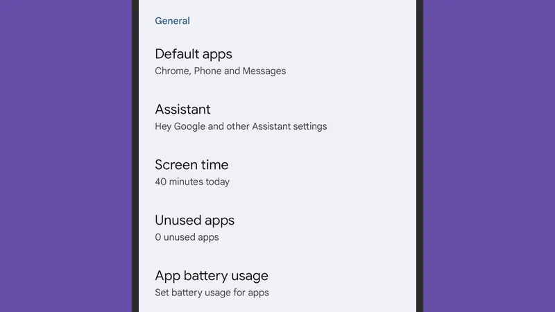 هناك بعض الخيارات التي يرتبط بها بعض الإعدادات المختلفة. على سبيل المثال، يمكنك تهيئة كيفية عمل تطبيق المساعد وتحديد المساعد الذي تريده من خلال النقر على خيار تطبيق المساعد الرقمي (Digital assistant app)، ربما تريد استخدام تطبيق أليكسا من شركة أمازون بدلاً من تطبيق جوجل أسيستانت كلما احتجت إلى مساعدة.