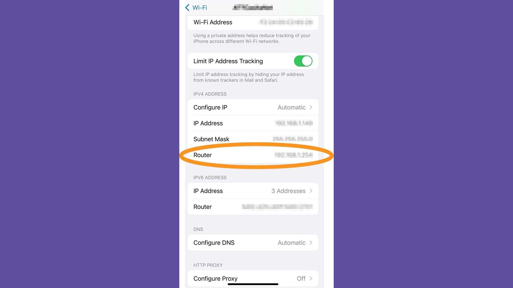 3. انتقل للأسفل حتى تجد عنوان آي بي (بروتوكول الإنترنت) الخاص بالموجّه (Router IP address).