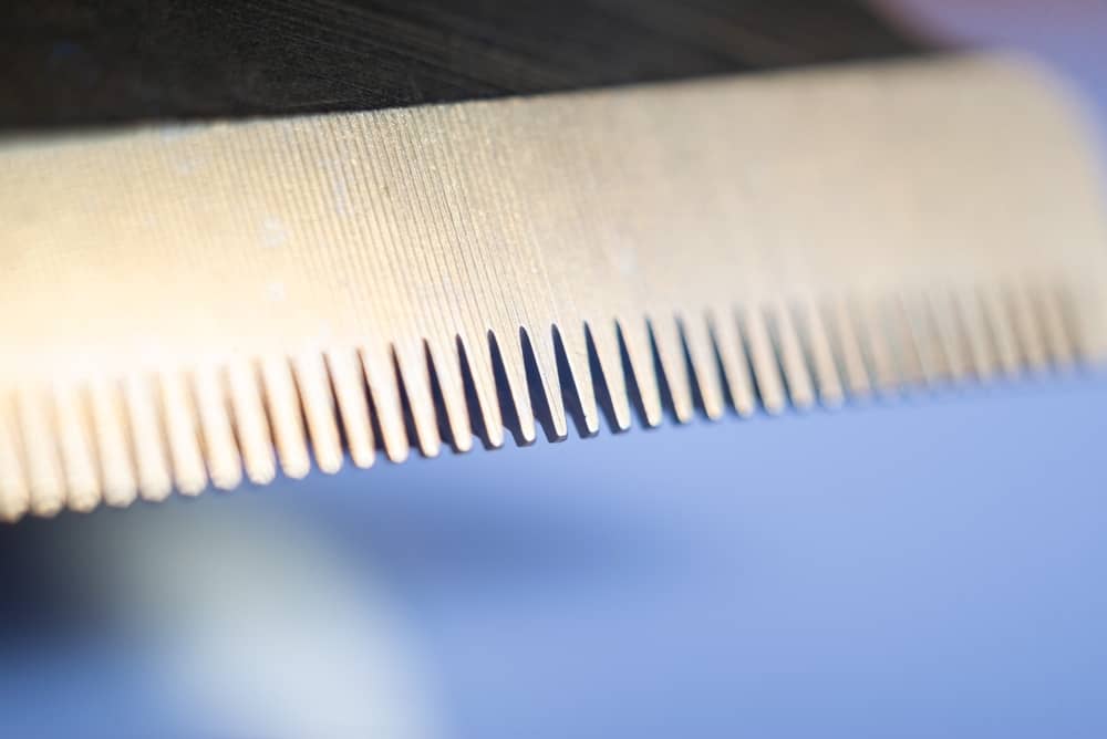 ويتوضع مباشرة تحت مشط الشفرات المتحركة مشط شفرات آخر ثابت في مكانه، وعندما تتحرك الشفرات المرتبطة بالمحرك أفقياً فوقها بشكل متردد، تعمل كل شفرتين متلاقيتين بالأعلى والأسفل كمقص صغير يقوم بقص الشعرة التي تقع بينهما، ويمكن تمرير الآلة لكي تقص بطريقها كل الشعر الذي يمر بين الشفرات.