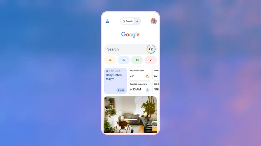 واصل التمرير لأسفل صفحة اقتراحات جوجل للاطلاع على المزيد من المقالات. وفي الجزء العلوي، ستلاحظ وجود مجموعة من الأدوات المصغرة التي تعرض نتائج المباريات الرياضية، وتوقعات الطقس، وأسعار الأسهم، ومواعيد شروق الشمس وغروبها، والمحتوى الجاري تشغيله، إلى جانب عناصر أخرى تعتقد جوجل أنها قد تثير اهتمامك. كما يمكنك في الأعلى النقر على "جوجل" لإجراء بحث عبر الإنترنت أو باستخدام تقنيات الذكاء الاصطناعي.