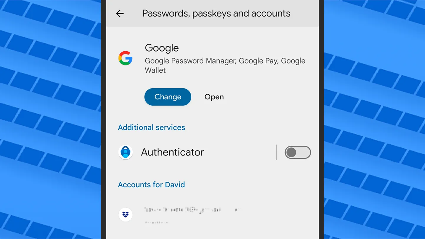 كما هو متوقع، مدير كلمات المرور من جوجل مدمج بصورة وثيقة في نظام أندرويد. بعد تشغيل "الإعدادات" (Settings)، اختر "كلمات المرور ومفاتيح المرور والحسابات" (Passwords, passkeys and accounts) (في هواتف بيكسل [Pixel])، أو اختر "الأمان والخصوصية" (Security and privacy) > "المزيد من إعدادات الأمان" (More security settings) > "كلمات المرور ومفاتيح المرور والملء التلقائي" (Passwords, passkeys, and autofill) (على هواتف جالاكسي [Galaxy]). هيئ إعدادات مدير كلمات المرور من جوجل من هنا، لتمكين حفظ كلمات المرور الخاصة بك واسترجاعها من أجل التطبيقات المعروفة على نظام أندرويد وكذلك داخل المتصفح كروم.