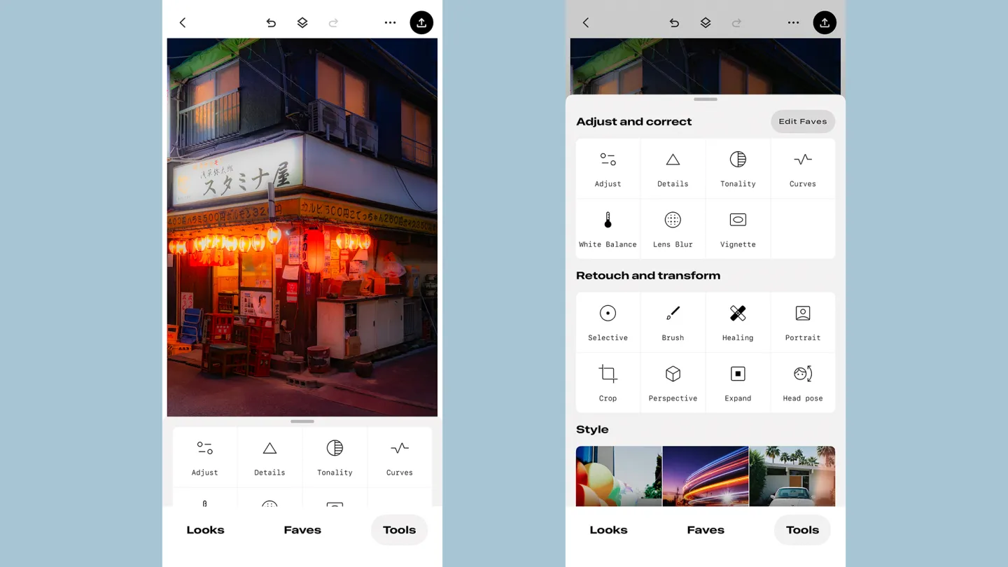 في علامة التبويب "الأدوات"، ثمة العشرات من الأدوات التي يمكنك استخدامها، ولكل منها إعداداتها الخاصة. اضغط على "ضبط" (Adjust) لتبدأ بأساسيات السطوع والتباين والإضاءات والظلال، على سبيل المثال، أو اضغط على "المنحنيات" (Curves) للحصول على مستوى أكثر تقدماً من التحكم في هذه القيم. وفي الوقت نفسه، يتيح لك ضبط درجات الألوان المختلفة للصور على نحو منفصل.