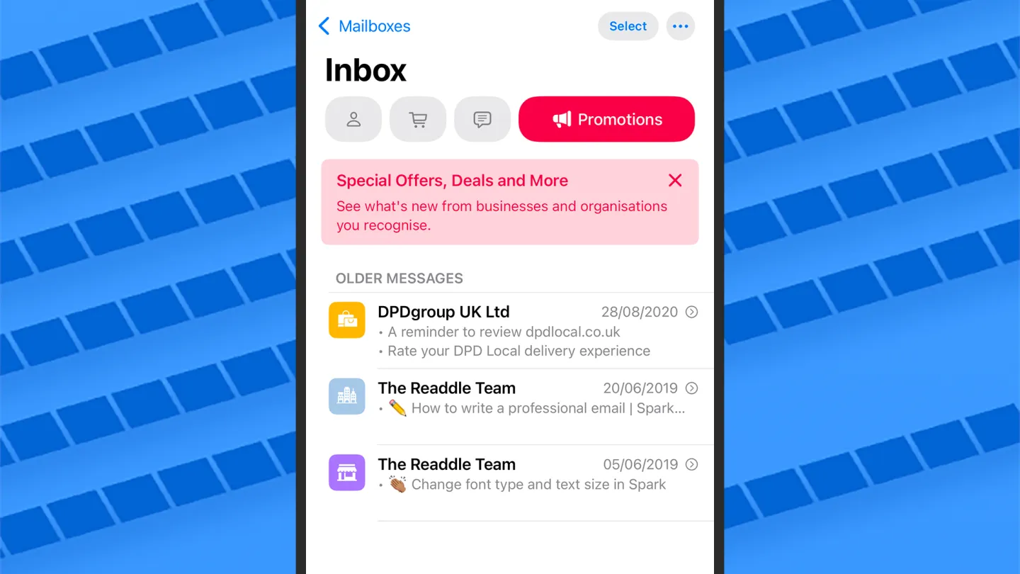افتح تطبيق البريد (Mail) على نظام التشغيل آي أو إس أو آيباد أو إس، وسترى علامة التبويب التي تحمل اسم "أساسي" (Primary) التي تعرض الرسائل الإلكترونية الأكثر إلحاحاً ورسائل جهات الاتصال التي تتفاعل معها أكثر من غيرها. تتيح لك الرموز الموجودة على اليمين رؤية أنواع الرسائل الإلكترونية الأخرى: المعاملات (Transactions) والتحديثات (Updates) والعروض الترويجية (promotions) والرسائل جميعها (All Mail). إذا جرى تصنيف رسالة ما تصنيفاً خاطئاً، افتح الرسالة الإلكترونية، وانقر على النقاط الثلاث في الزاوية العلوية اليمنى، واختر "تصنيف المرسل" (Categorize Sender).