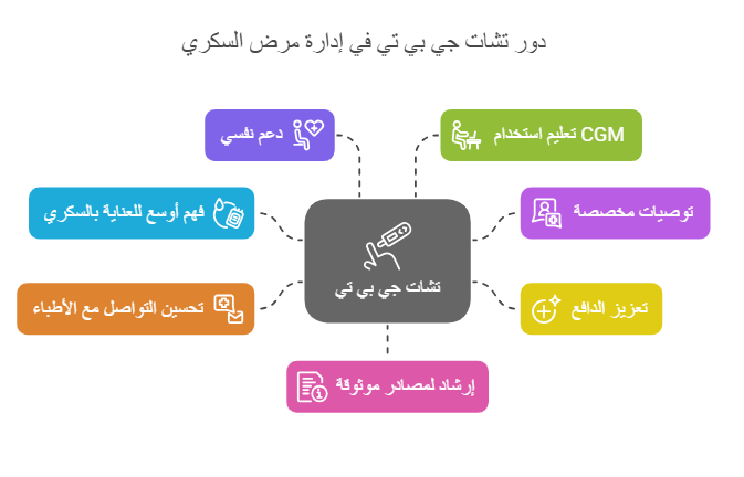 يمكن لمرضى السكري في السعودية استخدام تشات جي بي تي كمساعد شخصي يومي لتحسين التزامهم بالأدوية، والحمية، والرياضة، مع تعزيز التواصل مع أطبائهم.