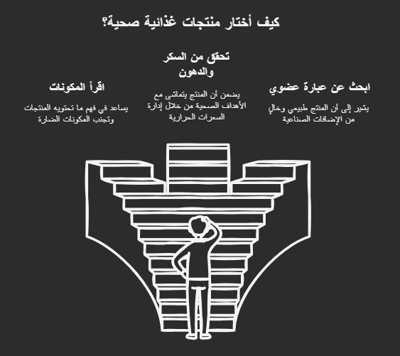 إذا كنت مهتماً بصحتك فعلاً، لا تكتفِ بالبحث عن عبارة "صحي" على المنتج، بل: