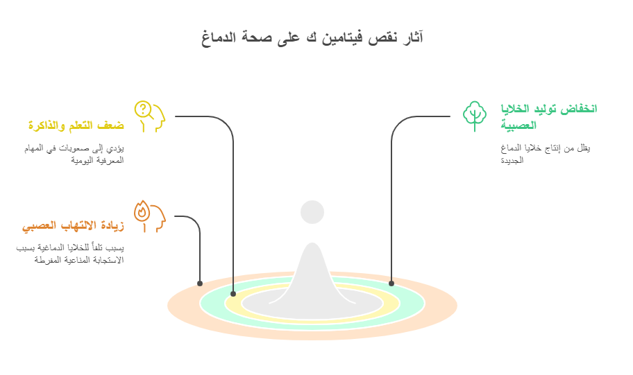 توليد خلايا دماغية جديدة أمر أساسي للحفاظ على الذاكرة مع التقدم في العمر. وعندما ينخفض مستوى فيتامين ك، تتباطأ هذه العملية ويزيد الالتهاب، ما يسرّع التدهور المعرفي.