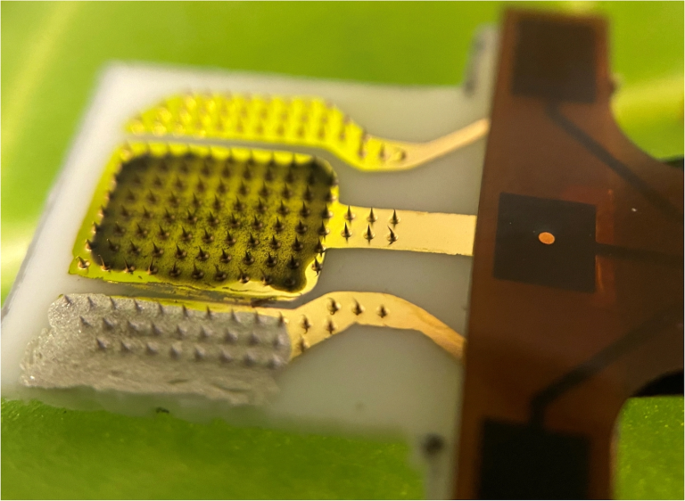 وهنا يأتي دور جهاز النبات القابل للارتداء. من خلال توصيل جهاز استشعار كهروكيميائي مباشرة بأوراق النبات، يعتقد الباحثون أن بإمكانهم الحصول على استجابة شبه فورية مع الحفاظ على الحد الأدنى من الاضطرابات الفيزيائية للنبات. ومن الناحية العملية، تخترق الإبر الدقيقة في المستشعر الأنسجة النباتية وتكشف عن بيروكسيد الهيدروجين دون الحاجة إلى جمع مستخلصات عصارة الأوراق. سطح الإبرة الدقيقة مطلي بطبقة رقيقة من الذهب، ممزوجة مع هلام مائي حيوي مكون من الكيتوزان المتوافق حيوياً والمحب للماء وإنزيمات بيروكسيداز فجل الخيل.