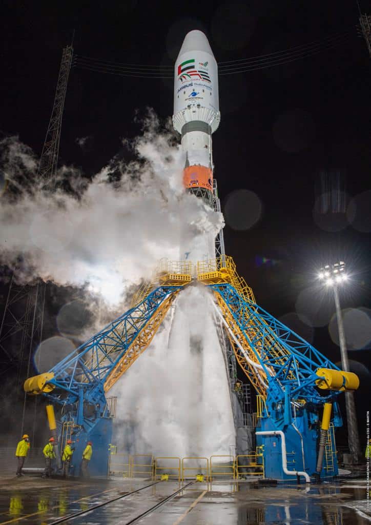 أطلقت الإمارات القمر الصناعي «عين الصقر» بنجاح إلى الفضاء من المحطة الفرنسية «غيانا»؛ الواقعة على الساحل الشمالي لأمريكا الجنوبية والخاضعة للسيادة الفرنسية، بواسطة الصاروخ «سويوز» الروسي أمس الأربعاء، وتزامناً مع اليوم الوطني الـ49 للإمارات.