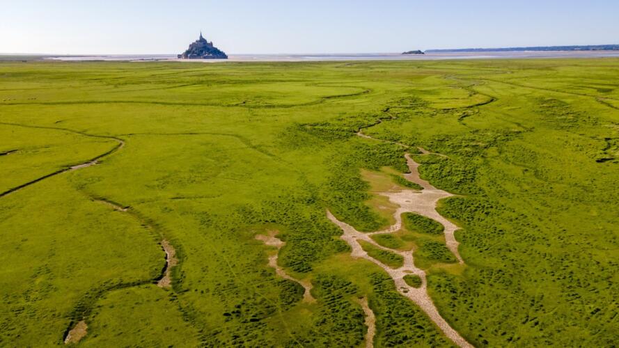 منظر جوي لجبل سان ميشيل في شمال فرنسا. تشتهر منطقة حوض باريس بالمواقع الجنائزية التي تعود إلى عصور ما قبل التاريخ؛ والتي استخدمها علماء الآثار لدراسة مستوطنات العصر الحجري الحديث. ديفيد برايرد/غيتي إميدجيز