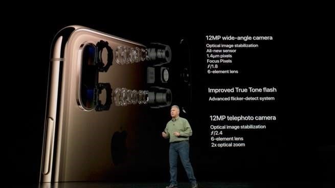 حدَّثت آبل تقريباً جميع أجزاء العتاد الصلب في الكاميرات، بما في ذلك تعميق البيكسلات على المستشعرات، التي أصبحت أكبر حجماً أيضاً، كما تتمتع الكاميرا بعدسة واسعة الزاوية وأخرى بعيدة المدى، كل منهما بدقة 12 ميجا بيكسل.