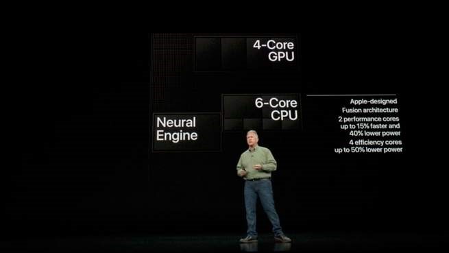 يقبع العقل المدبِّر للجهاز خلف تلك المساحة الشاسعة الملونة والمضيئة على الهاتف، وهو معالج أيه 12 بيونيك؛ ويتمتع هذا المعالج الجديد بتصميم ثماني النوى، بزيادة نواتين عن الطراز السابق، ويمكنه أن يُجري 5 تريليون عملية حسابية في الثانية، وهو ما قد يبدو زائداً عن ما تحتاجه لعبة الطيور الغاضبة مثلاً أو تطبيق تيندر.