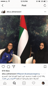 تمكنت الشابة علياء المنصوري، ذات الخمسة عشر عاماً، من حفر اسمها على جدران التاريخ، ليخلّد بفخر كابنة الإمارات الفائزة بمسابقة "جينات الفضاء" في إطار التعاون المستمر بين وكالة الإمارات للفضاء، والشركات الراعية لبرنامج المسابقة.