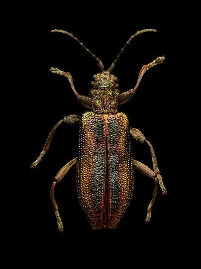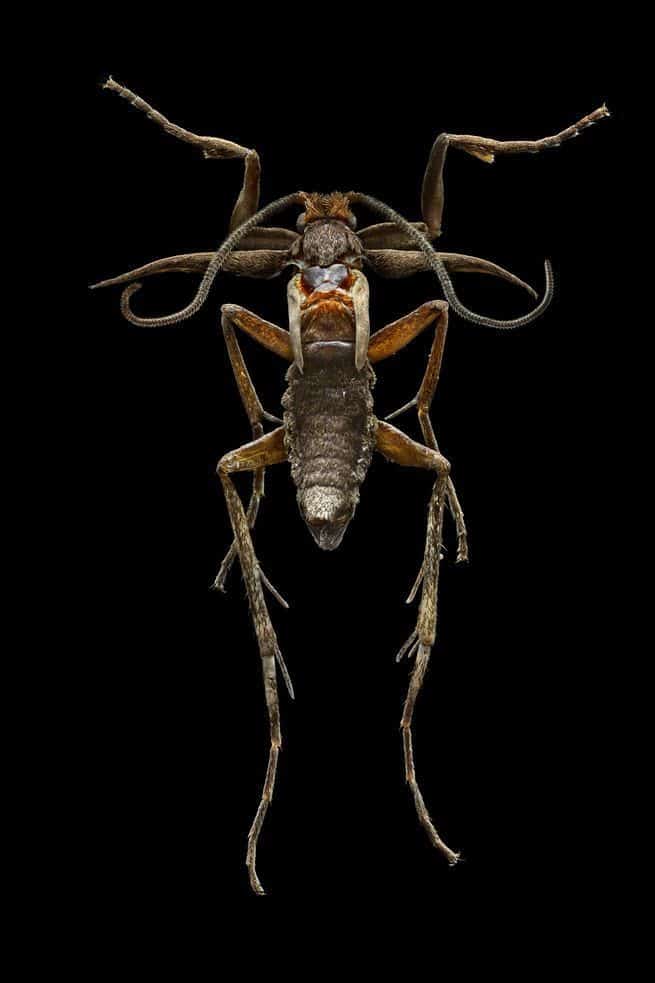 يوجد أكثر من 25 ألف نوع من الخنفساء طويلة القرون، كهذه الجوهرة التي تظهر في الصورة، والقادمة من نيجيريا. تأكل يرقاتها الخشب الميت، وقد تقضي حتى عشرين عاماً قبل أن تتحول إلى حشرة بالغة ذات حراشف ناعمة تشبه الفراشة، والتي تعطيها لوناً مذهلاً.