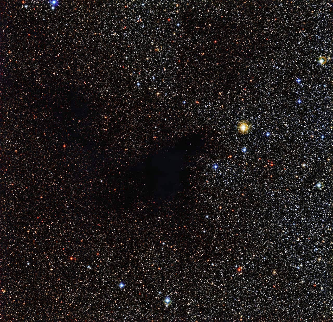 The Wide Field Imager (WFI) on the MPG/ESO 2.2-metre telescope at the La Silla Observatory in Chile snapped this image of the dark nebula LDN 483. The object is a region of space clogged with gas and dust. These materials are dense enough to effectively eclipse the light of background stars. LDN 483 is located about 700 light-years away in the constellation of Serpens (The Serpent).